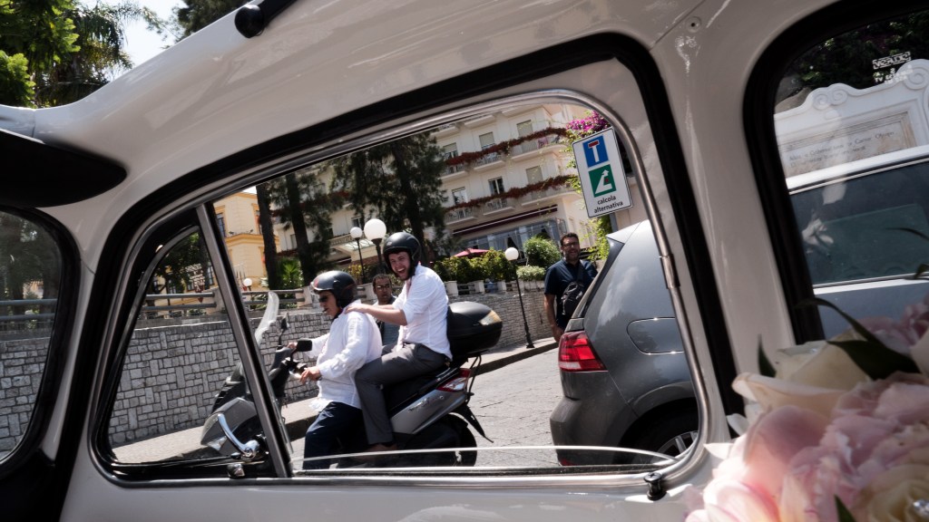 Our first port of call was meeting our lovely registrar Allessandra. We signed a few documents and she talked us through the day. As part of Allessandra’s service, she included my bouquet and Rich’s buttonhole. So she took us to the florist and we picked our flowers, which were then stored in a massive fridge. Once leaving Allessandra, we then went to a shop we found on our previous visit to order our wedding favours (Limoncello shot glasses). Tony then picked us up, and we drove to our wedding reception to go through everything and confirm it all (2 days before – that is how relaxed the process is). This is when we paid Tony – this wasn’t us leaving it to the last minute, that’s just how they do things. In fact, you here all of the time about guests cancelling and things changing last minute with a wedding, and you end up losing money. Tony’s relaxed attitude with regards to payment, cut all of this out.