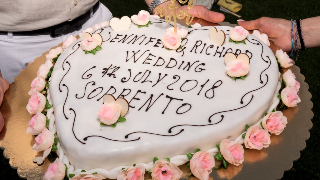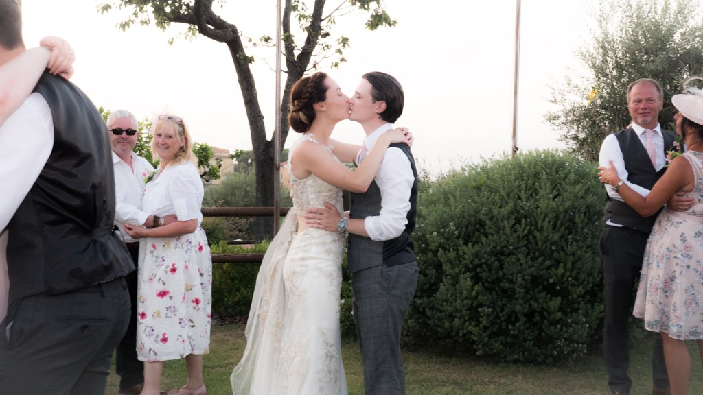 I remember how comatose everyone looked after food – it was filling and delicious. We then gave gifts, and had some lovely speeches. That then allowed my body to relax before we had our first dance. Now, before I get on to that, in Italy, if you play any kind of music at a private event you have to pay a government agency permission to do so. It’s called SIAE for copyright and loyalties – this covered us for creating a playlist and playling music through a speaker for the evening. Our first dance was to a song called “Pushing Up Daisies” by Brothers Osborne – the song is one of our favourites and it totally suited our wedding style.