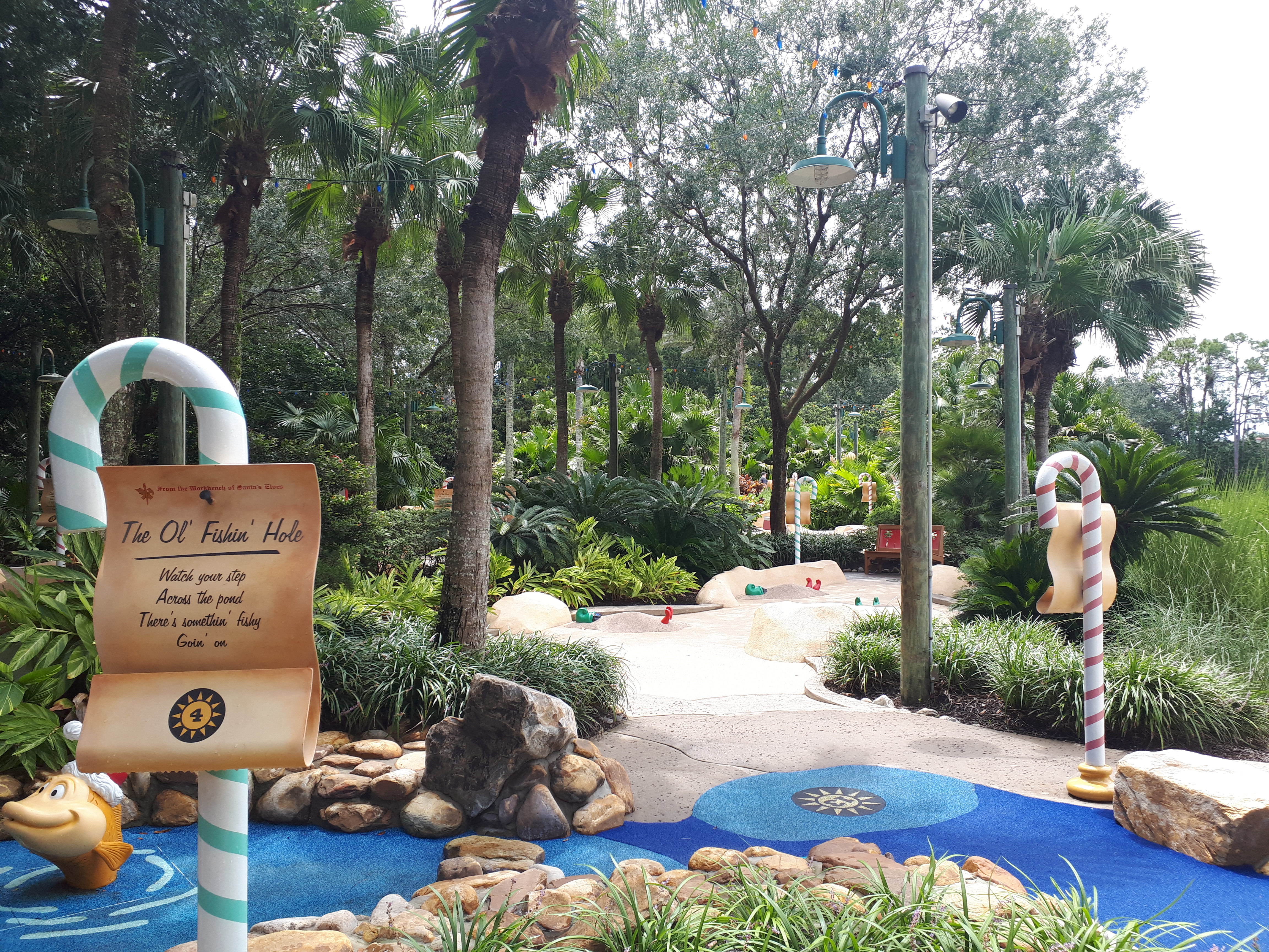 Just outside of Blizzard Beach, you will find a fun mini golf called Winter Summerland – and the name is exactly what you would expect the theme to be. A Christmas-summer-winter theme.