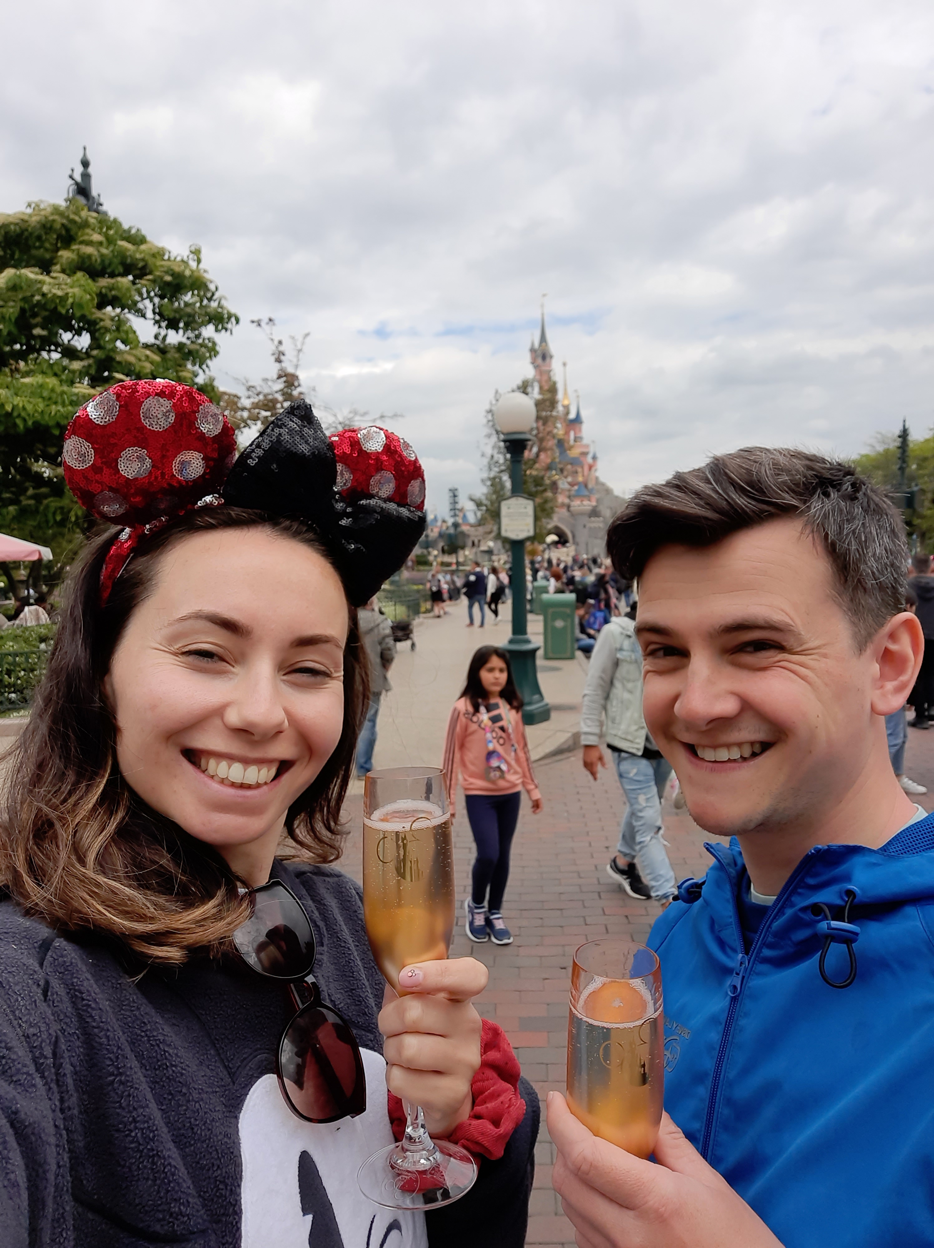 A nice little feature we enjoyed was the champagne cart on Main Street (we think it only comes out mid-afternoon). Now, we aren’t really drinkers, let alone champagne drinkers. But when in Disney, given the opportunity to get a souvenir (plastic) champagne glass… I couldn’t say no.